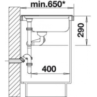 Line installation possible in a 65 cm deep worktop