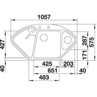 Blanco Delta II corner built-in sink Silgranit PuraDur, color cafe, InFino drain, 523669