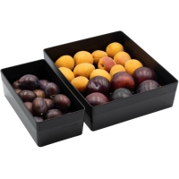 The BORA sorting tubs in two different sizes serve as an organization system within the BORA Fresh zero tubs. Thanks to their perforated base, you can also use the trays outside the refrigerator as a colander. Thanks to the drainage effect of the holes, the washing water drips off quickly. Freshly purchased food can be washed in the sorting tray and then processed during cooking or stored in the refrigerator until needed. The sorting trays are particularly suitable for storing and organizing unpackaged fruit and vegetables.