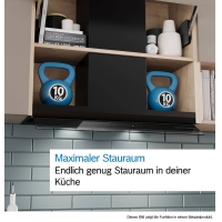 - Increased storage space: up to 10 kg capacity on each side of the extractor hood