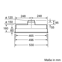 - Diameter of the exhaust air connection: 120 / 150 mm