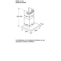 - Device dimensions, exhaust air (HxWxD): 635-895 x 598 x 500 mm