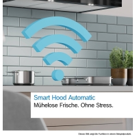 - Smart Hood Automatic: The extractor hood automatically adjusts the fan power as the hob continuously sends cooking data (works with all current Series 6 induction hobs; for other Home Connect hobs, the extractor hood can be controlled directly from the hob if a connected Home Connect account is available)