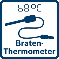 - Roast thermometer: Measures the core temperature and switches off the heating type when it reaches.