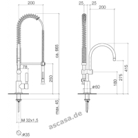 Functional professional tap with pendulum shower from the Tara Classic series from Dornbracht for comfortable work in the kitchen.