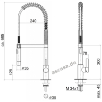 Thanks to the pendulum arm of the Dornbracht mixer tap , you can work professionally and without compromise in the kitchen. The high-quality Dornbracht pendulum shower is equipped with a stainless steel spring.