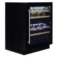 Undercounter model with two temperature zones, push-to-open, and a capacity of 39 bottles, an elegant exterior and a stainless steel door handle. This model is perfect for contemporary kitchen environments. The bottles are stored on solid beech wood shelves and are surrounded by warm white, cool white or blue LED interior lighting. Please note that this model is suitable for under-construction and free-standing.
