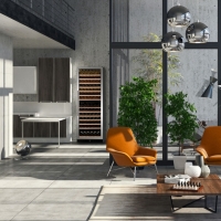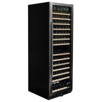 A free-standing model with a capacity of 166 bottles and two cooling zones from the Grande line. With its elegant exterior, the DX-166.428 is perfect for modern kitchens, bars and hotels. The bottles are stored on wooden shelves, which are highlighted by a blue LED light. Please note that this model is suitable for freestanding or built-in use.