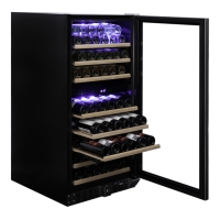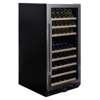A free-standing 94-bottle, two-zone model from the exclusive Dunavox range. The SDSK model features an elegant exterior - a stainless steel handle and the black unit has a recessed handle. The Grande-94 is perfect for modern kitchen environments. The bottles are stored by solid wooden shelves in a stunning light blue interior. Please note that this model is suitable for freestanding or built-in models.