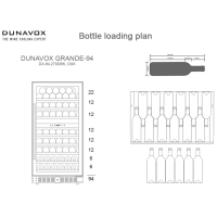 A freestanding 94-bottle, two-zone model from Dunavox's Grande family. The SDSK model features a stainless steel handle and the black unit has a recessed handle. The Grande-94 is perfect for modern kitchen environments. The bottles are stored on wooden shelves and surrounded by blue LED light. Please note that this model is suitable for freestanding or built-in use.