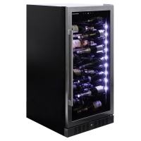A single zone, 70 bottles freestanding model from Dunavox’s Sera range. Boasting an elegant exterior and a stainless steel door handle, the DUNAVOX Sera-70 is perfect for contemporary kitchen environments, restaurants or hotels. The bottles are supported on patent display shelves and surrounded by white, amber and blue two-side LED lighting. Please note that this model is suitable for freestanding or built-in use.