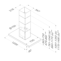 - Height (min. - max.) with exhaust air: 56.3 x 73 cm