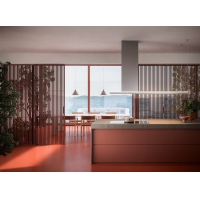 The rising vapor is sucked off the outer edges of the hood body construction and directed to the grease filter behind it. Due to the high flow speed at the edge of the extractor hood, almost no cooking fumes can escape into the kitchen, even with lower motor settings. There are no turbulences, the drag effect is high and rebound effects play no role. The air does not flow into the kitchen, but directly into the extractor hood. The increase in efficiency resulting from edge extraction enables operation at lower power levels, with less energy consumption and lower noise.