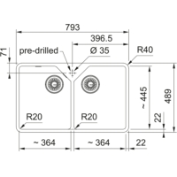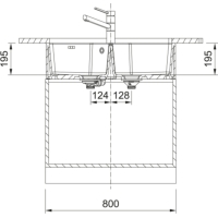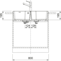 - Basin: 2 x 364 x 445 x 195 mm