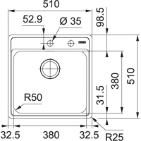 - Sink dimensions: 510 x 510 mm