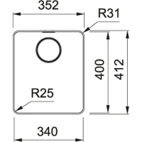 - Sink dimensions: 352 x 412 mm