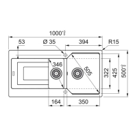 - Basin: 350 x 425 x 220 mm + 164 x 322 x 140 mm