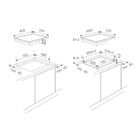 - Cutout dimensions W x D 750 x 490 mm