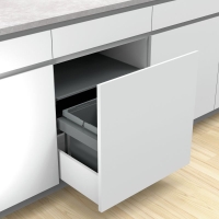 With its installation depth of only 40 cm, the clever Cox Stand-UP® 350 K/500-3 waste separation system is particularly suitable for short periods Excerpts. It is intended for installation in existing cabinet pull-outs with a body width of 50 cm. Despite the compact dimensions, there is a total waste volume of 27 liters. This is divided into two small waste containers of 7.5 liters each and a larger one of 12 liters. They are loosely inserted into a stable frame and can be removed individually at any time. For this purpose, each bin is equipped with folding handles that allow for effortless handling. The overall lid, which is firmly installed in the cupboard, ensures that odors are stopped. A biolid and a sealing lid are also available as optional accessories, which can be recessed and therefore fit comfortably under the cover. The waste separation system is installed directly on the floor of the pull-out and can be completed quickly.