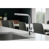 The Portare 1 kitchen faucet from the Armate Servizio brand range impresses with its high quality standards and strong energy-saving potential. With its confidently straight spout shape and the side control lever, it fits into any modern kitchen design as a highlight. There are various surface finishes to choose from that have a silky feel with optimal care properties. In addition to its appearance, the high-pressure fitting impresses with its range of functions. It offers a swivel spout in a wide range of 360°, allowing maximum flexibility. An anti-limescale aerator works in it, which is designed as a laminar jet regulator. It produces a soft and even jet of water. In addition, the clever cold start function helps to save energy: up to the middle position, only the cold water pipe is opened. It only gets warm to hot when you turn it further. The housing material uses solid brass with high quality and workmanship. The body is combined with a premium cartridge including anti-scald protection that has ceramic seals. It allows precise adjustment of water temperature and quantity. A stabilization plate and pre-assembled connection hoses ensure effortless installation.