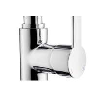 - Single lever mixer. With swiveling spout, side lever, ceramic cartridge and scald protection.