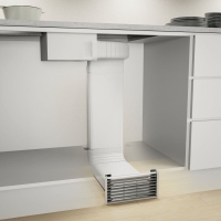 The COMPAIR® PRIME flow plinth ventilation grille flow is characterized by its subtle design, so that it can be unobtrusively integrated into the kitchen design. It is used in duct-guided downdraft or downdraft ventilation systems with an integrated activated carbon filter in recirculation mode. The aerodynamic slat profiles ensure an even distribution of the air flow into the room. The ventilation grille is suitable for base heights of 100 to 150 mm. It can be combined as desired with a COMPAIR® flow flat duct pipe or GREENflow flex duct. The associated universal connector enables a tool-free connection. The slatted grille is made of anodized aluminum.