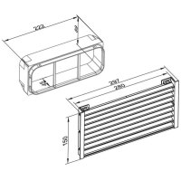 - Slat ventilation grille made of anodized aluminum profiles. For duct-guided downdraft or trough ventilation systems with integrated activated carbon filters in recirculation mode.