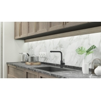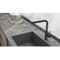 Sets an elegant accent and impresses with its functionality: the ARMATE® Namor 3 sink mixer from Servizio in a modern style. One of the defining design features is the L-shaped spout with its gentle curve. The single lever mixer is made of high quality stainless steel. The material is characterized by robust surfaces and long-lasting properties. For optimal handling, the spout can be swiveled up to 120°. The fitting is operated using the slim lever on the side. An integrated laminar radiator prevents air turbulence, so that a crystal-clear water jet emerges with low noise. The ceramic cartridge that is also included allows the water temperature to be precisely regulated. Ideal conditions are created, for example when pre-rinsing dishes or washing fruit and vegetables. From a visual perspective, the high-pressure fitting is available with different surface finishes.