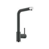The Corto 780 composite built-in sink in the set presents itself in a decorative granite look. With its clear contours, it offers an expressive eye-catcher in every kitchen. The grooved draining board, which is suitable for placing glasses, cups and smaller cookware, ensures a high level of user comfort. The entire kitchen sink is made of high-quality artificial stone with a particularly high quartz content. The material is characterized by its resistance to external influences and is therefore particularly durable. Furthermore, it gives the surfaces an extraordinary feel. In keeping with the elegant granite style, the set includes a high-pressure set. In addition to the single-lever mixer, the spout can be swiveled through 360°. The basic equipment includes a strainer basket valve and an elegant chrome-plated rotating eccentric set. With holes on both sides, the sink is reversible