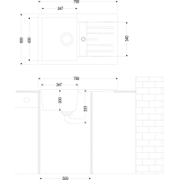 integrated into the worktop with the basin on the left or right side.Equipment: