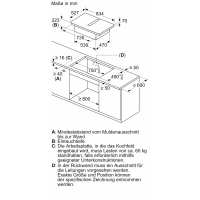 - Min. Nischenmaße für Installation (H x B x T): 223 x 750-750 x 490-500 mm