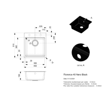 Reginox Florence 40, built-in granite sink, tap hole bank, color nero black, R40331
