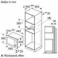 38 cm high built-in microwave for defrosting, warming up or preparing dishes in the shortest possible time.