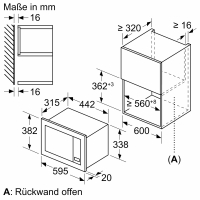 - Niche dimensions (HxWxD): 365 mm x 560 mm x 320 mm