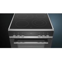 The modern freestanding stove with glass ceramic hob shortens the cooking time thanks to rapid heating.