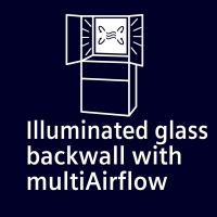 - Illuminated glass rear panel with multiAirflow: elegant lighting, uniform cooling.