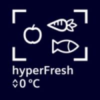 - hyperFresh <0°C>: more space for fruit and vegetables. And a particularly cold environment for fish and meat.