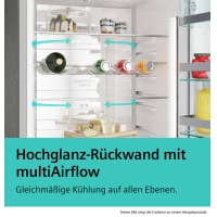 - High-gloss rear wall with multiAirflow: evenly cooled food and drinks on all levels.