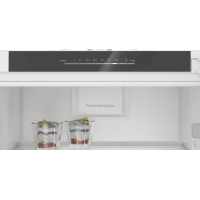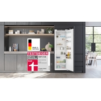 The built-in refrigerator with fresh drawer for fruit and vegetables, quick cooling function and bright LED lighting offers ideal storage.