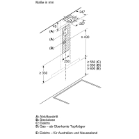 - Minimum distance to the gas hob: 650 mm