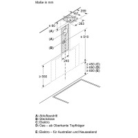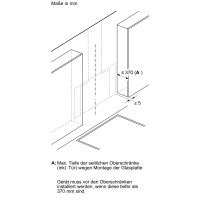 - Minimum distance to the gas hob: 650 mm