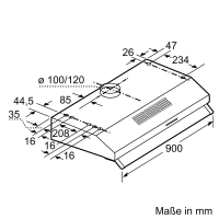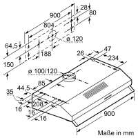 - Diameter of the exhaust air connection: 120 / 100 mm