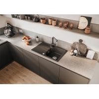 The special resistance of KeraDomo kitchen ceramics, as a sister product to laboratory ceramics, makes them the ideal material for all areas that have to meet extreme demands. The fine stoneware fired at over 1,200°C owes its high material density and resilience to the company's experience as a provider of sophisticated laboratory equipment - 1 basin