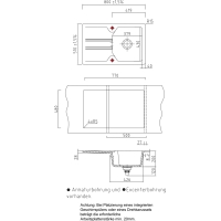 - This sink can only be installed as a built-in or overlay sink; Flush installation or use as an undermount sink is not possible!
