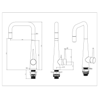 • The fitting can be mounted directly in front of a wall, as the cold and hot water is regulated at 90° towards the kitchen sink