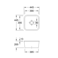 - Sink dimensions: L x W 445 x 445 mm