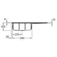 - "Hole drilling by manufacturer" option: If you would like the hole drilling to be made at the factory by the manufacturer for safety reasons, please select this option. For this we need the numbers/positions of the tap hole(s) that V & B should drill for you. For the sink version with manual operation you need 1 tap hole for the fitting; for the version with eccentric operation you need 2 hole holes (faucet and eccentric operation). Please note the dimensional drawings shown below, as the positions of the hole holes in reversible sinks can be different for the bowl left and bowl right versions.