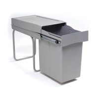 Extendable built-in waste bin with a 21 liter plastic insert and a practical storage tray. The built-in waste bin saves space and can be easily installed in the kitchen base cabinet.