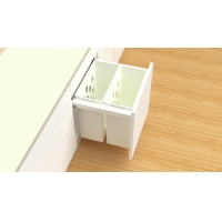 The WESCO® Pullboy Soft Comfort Laundry 470 K/600-2 laundry pull-out ensures order in the utility room. The front pull-out system is intended for installation in a base cabinet with a body width of 600 mm. Two square containers placed one behind the other with a volume of 26 liters each are available. They can be removed individually and are easy to handle thanks to the recessed grips on the sides. A hole perforation ensures good ventilation of the laundry. So that the full extension closes quietly and comfortably, it is equipped with a soft close and cushioning. The laundry sorting system is made of durable plastic in the neutral color white. It can be installed in the side wall using screw mounting and connected to the front panel of the cabinet.