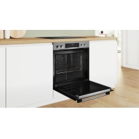 , ülemine/alumine kuumus, konvektsioongrill, suure pindalaga grill, kuum õhk õrnaltVentilaator jaotab soojuse ühtlaselt kogu küpsetusruumi ulatuses, mis aitab säästa energiat. Ühel tasandil küpsetades - nt. B. väikesed saiakesed, lehtkoogid või rullbiskviidid – eelsoojendus pole vajalik.